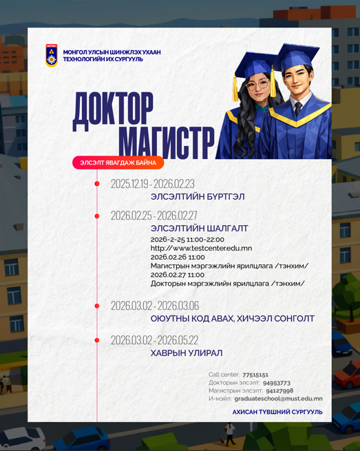 ШУТИС-ийн магистр, докторын элсэлт явагдаж байна.