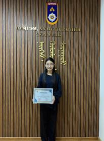Тэргүүн байранд “Хүннүгийн төмөрлөг олдворын найрлагийн харьцуулсан судалгаа / SEM-EDS ба Металлографийн судалгааны үр дүн /” илтгэлээр Соёлын биет өвийн хадгалалт, хамгаалалтын технологи хөтөлбөрийн магистрант О.Сайханаа (Удирдагч багш доктор, дэд профессор Д.Хатанбаатар),